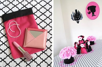 The vintage silhouette of barbie works as inspiration, with black and pink as the colour scheme, try incorporating your theme in everything from the invites to the decor... even the bride to be t-shirt.